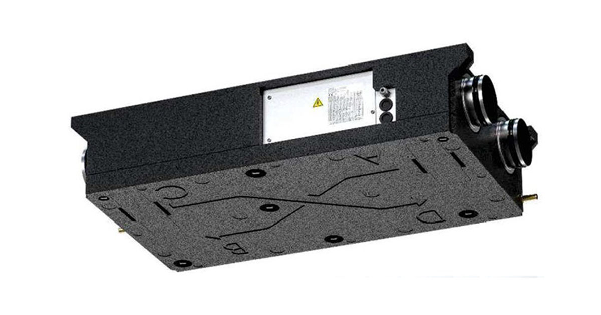 Deumidificatore per sistemi a pannelli radianti con integrato un sistema di rinnovo dell’aria e recupero del calore ad alta efficienza.