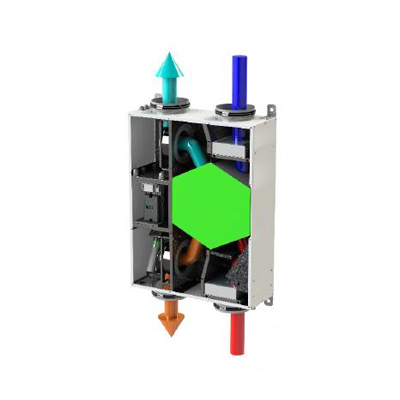 • Unità RCE per incasso in-wall in esterno, che consente una distribuzione VMC molto snella e rapida nonchè economica.