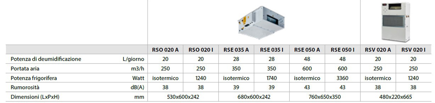 - Ventilatore modulante nella versione RSE, a 3 velocità a bassi consumi nelle versioni RSO e RSV.