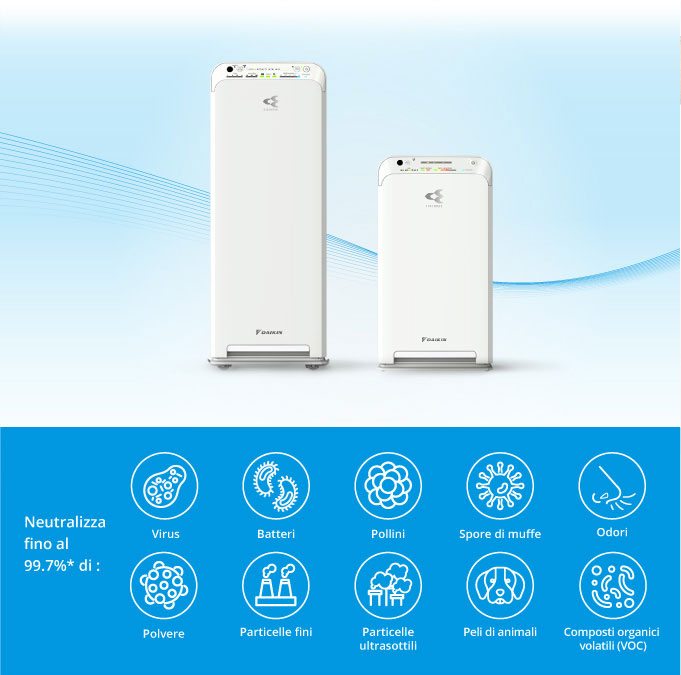 Rimuove il 99,9% di virus, allergeni e polveri ultra sottili fino a 8 volte più piccole del PM 2.5. Efficace anche contro la formaldeide! Rileva in ogni momento la presenza di impurità grazie alla modalità auto e si attiva per rimuoverle solo quando necessario. Testato e certificato dal prestigioso istituto ECARF come prodotto ideale per le persone con allergie.